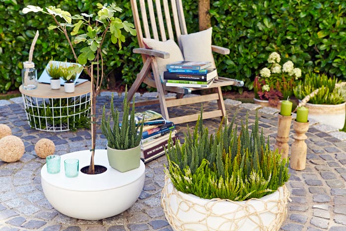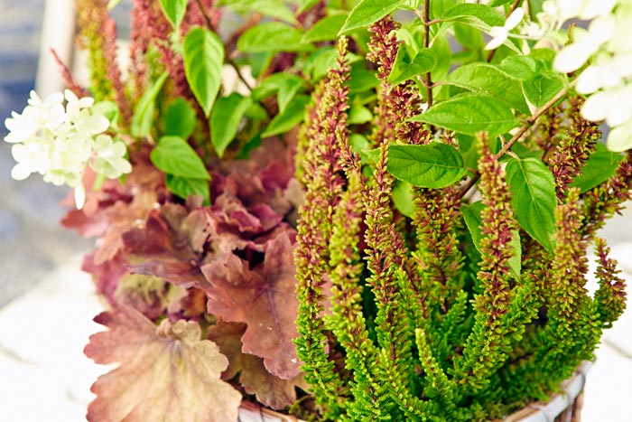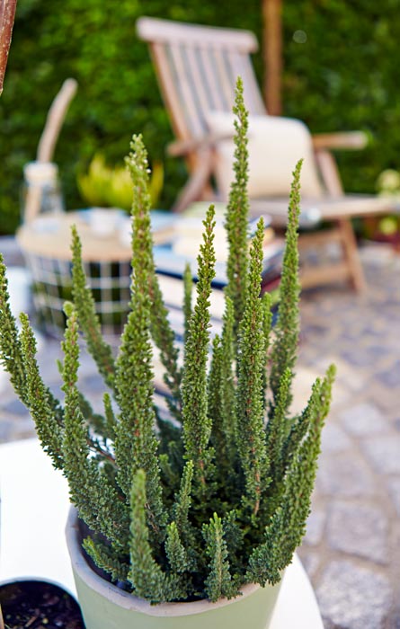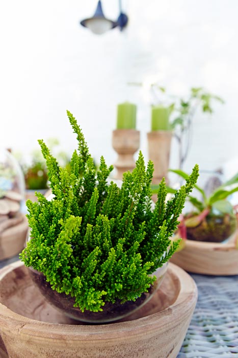 Auch die Zusammenpflanzung von Heide liegt im Trend. Bis zu fünf verschiedene Sorten werden dafür in einem Topf aufgezogen. Dadurch lassen sich sowohl harmonische Kombinationen aus Weiß-, Rosa- und Rottönen erschaffen, als auch Mischpflanzungen in Kontrastfarben, beispielsweise in Schwarz-Rot-Gold.