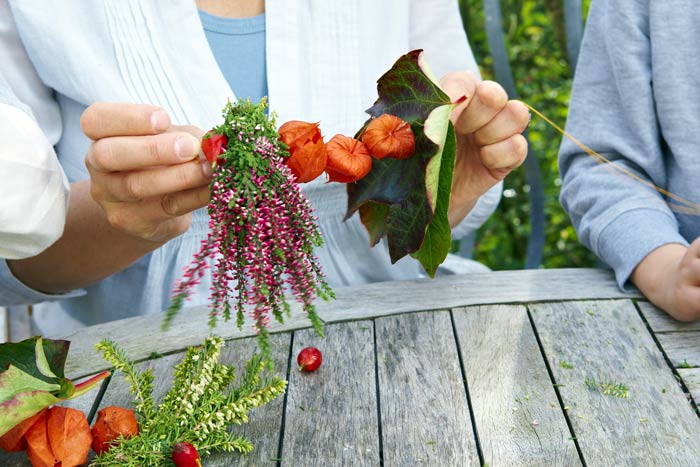 Ein kleines bisschen Geschick, eine große Portion Neugier und das, was die Natur im Herbst zu bieten hat: Mehr braucht es nicht, um mit Kindern tolle Tischkärtchen und bunte Heide-Girlanden zu basteln. So können die Kleinen spielerisch an die Natur herangeführt werden. Das Basteln draußen an der frischen Luft macht gleich doppelt Spaß – und erleichtert nachher das Aufräumen.