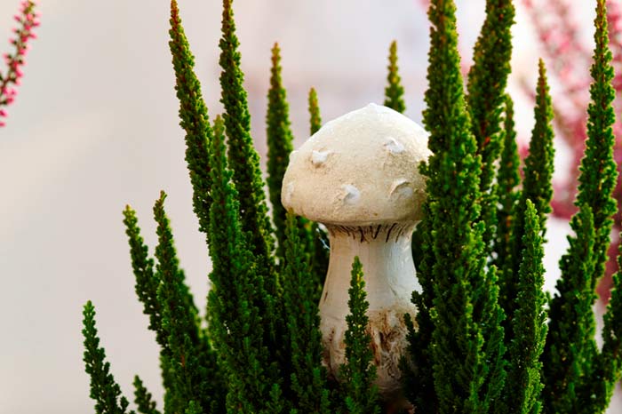 Ein Garten, der Geschichten erzählt: Mit fabelhafter Heide und den richtigen Deko-Elementen lassen sich geheimnisvolle Märchenwelten gestalten. Wichtig dabei ist eine starke Symbolik: Alles in Form von Pilzen, Zapfen, Fröschen, Kronen, Elfen und Feen ist dazu geeignet, die Magie im Garten zu entfachen.